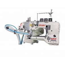 Juki MF-7923-E22(E23)-B/UT51(UT57) (комплект) Высокоскоростная плоскошовная машина с цилиндрической платформой, с верхним и нижним застилом притачивание по замкнутому контуру спандексовой эластичной ленты с ручным (пневматическим) окантователем. Автоматическая система смазки. Автоматические функции: электромагнитная (пневматическая) обрезка нитей, подъем лапки, позиционирование игл. Характеристики: Расстояние между крайними иглами 4,0 (5,6/6,4) мм длина стежка 0,9-3,6 мм скорость шитья до 5500 ст/мин ..