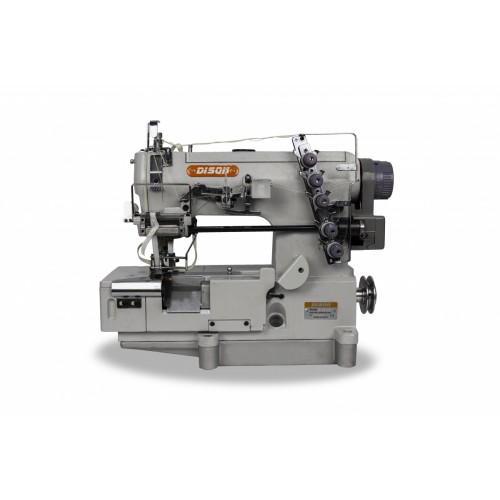 Плоскошовная машина цепного стежка с плоской платформой, верхним раскладчиком нити, приспособлением для дозированной подачи эластичной ленты и правосторонним ножом обрезки края материала. Предназначена для пошива трикотажных изделий. Используется для пришивания резинки по краю изделия