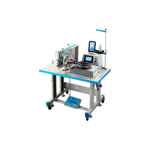 Эта машина оборудована 50 встроенными программами шитья на различное количество стежков и конфигураций шитья, с возможностью создания новых программ. Благодаря автоматической подаче пуговиц с использованием специального податчика, обрезке нитей и подъему прижимной лапки посредством электромагнитного привода, данная машина значительно упрощает и ускоряет процесс шитья.
