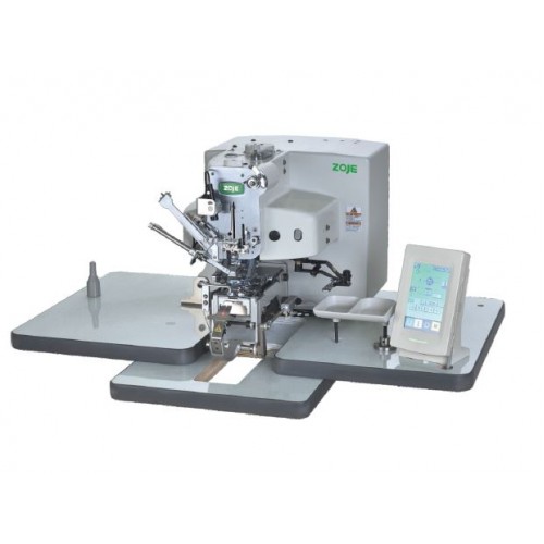 Продукт Пуговичная швейная машина Zoje ZJ5829 (комплект) является высокоскоростной пуговичной машиной с компьютерным управлением. Она оснащена эксклюзивной системой активного натяжения, которая повышает быстродействие и позволяет регулировать натяжение нити при смене ткани. Натяжение нити при пришивании пуговиц и обертывании горловины также можно настроить отдельно на панели управления.