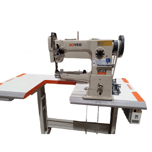 JOYEE JY-246 (комплект) - это рукавная машина тройного продвижения, предназначенная для пошива изделий из кожи и других тяжелых материалов. Она оснащена увеличенным челноком и автоматической системой смазки без подвижной платформы для окантовки.