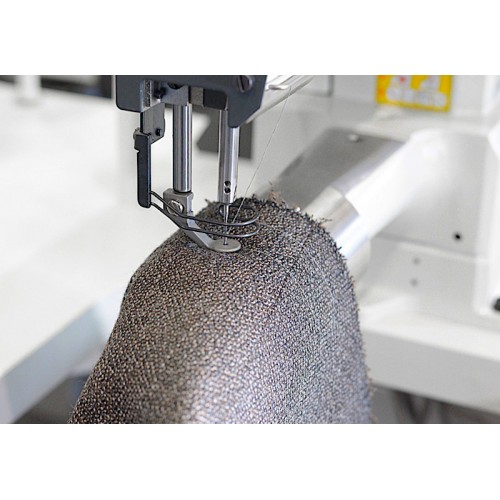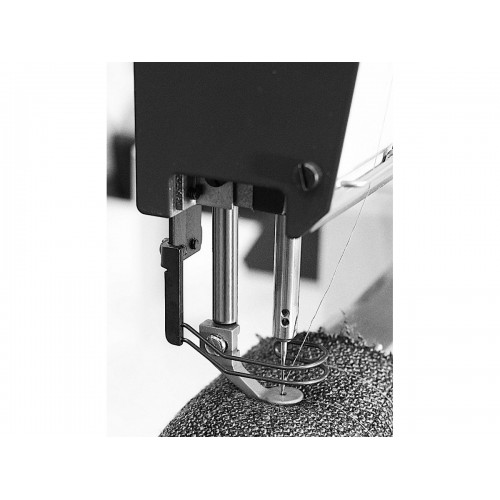 Специальная одноигольная машина рукавного типа для сметочных и подгибочных работ на мужском пиджаке, пальто, подплечиках и т.д. Без транспортера материала, с автоматической обрезки ниток. Монтаж головки поперек стола. Крышка стола с вырезом.
