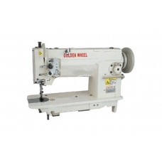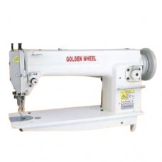Golden Wheel CS-6102 (комплект) Одноигольная прямострочная машина челночного стежка с шагающей лапкой и увеличенным челноком предназначена для производства тентов, чехлов, диванов, автомобильных сидений, сумок, перчаток, брезентовых изделий и т.д. Машина с верхней и нижней подачей материала предназначена для эффективной обработки труднотранспортируемых материалов. Преимущества: Плавный запуск и тихий ход. Машина удобна и проста в обслуживании. Движения шагающей лапки синхронизированы с продвижением зубчатой рейкой, обеспечив..