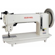 Golden Wheel CS-2040 (комплект) Прямострочная швейная машина челночного стежка с тройным (унисонным) продвижением и увеличенным качающимся челноком предназначена для шитья изделий из сверхтяжелых материалов (строп, парашютов, ремней безопасности, мягкой мебели, тентов, палаток, сумок и т.п.). Большая область шитья (404 мм) повышает удобство при работе с объемными изделиями. Аналог Durkopp Adler 204-370. Преимущества: Высота подъема лапки до 20 мм позволяет использовать машину при производстве изделий из сверхтяжелых материало..