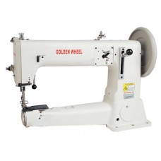 Golden Wheel CS-441 (комплект) Рукавная швейная машина челночного стежка тройным (унисонным) продвижением (зубчатая рейка, шагающая лапка, отклоняющаяся игла) и увеличенным качающимся челноком для сверхтяжелых материалов. Машина предназначена для шитья тентов, чехлов, мягкой мебели, дорожных сумок, спортивного инвентаря, парашютов, строп и других изделий для транспортировки грузов. Эффективный механизм тройного (унисонного) продвижения позволяет использовать машину для прошивания нескольких, сложенных в стопку, слоев тяжелых материалов..