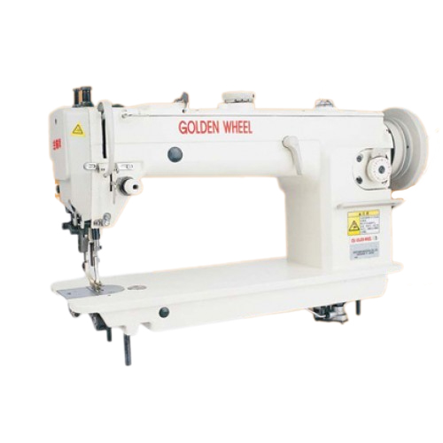 Двухигольная прямострочная машина челночного стежка с тройным (унисонным) продвижением для шитья тяжелых и сверхтяжелых материалов толстой синтетической нитью. Предназначена для выполнения простых и декоративных строчек, при производстве преимущественно высококачественных изделий из кожи, чехлов для сидений, декоративных подушек, сумок, тентов и др.