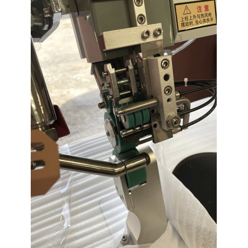 Принцип работы: машина подает термопластичную клеевую ленту. Лента нагревается струей горячего воздуха. Горячий поток "подплавляет" ленту. Продвижение осуществляется роликами. Они обеспечивают равномерное и сильное давление на ткань, закрывая шов лентой.