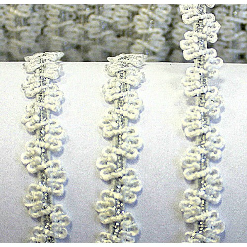 Резинка бельевая декоративная с люрексом Зиг-заг 8 мм белый/серебро, уп. 100 ярд