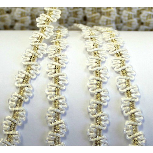 Резинка бельевая декоративная с люрексом Зиг-заг 8 мм белый/золото, уп. 100 ярд