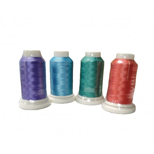Вышивальные нитки из 100% полиэстера. Высококачественные, блестящие, шелковые вышивальные нитки из сложного профилированного полиэфирного волокна (трилобала). Блеск, мягкость, высокая устойчивость покраски, высокая устойчивость к трению, прочность.