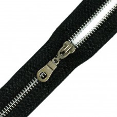 Молния металл Т-8, 2 замка, 75 см, никель, оксид, КНР Металлическая молния состоит из металлических зубцов, которые зажаты вокруг тесьмы. Для её изготовления используется латунь или никель. Такие молнии очень прочные. Один из основных минусов металлических молний – существенный вес, по сравнению с пластиковыми. Поэтому они не подходят для использования с лёгкими тканями. Металлические молнии – обязательный атрибут джинсовой одежды, также их ставят в верхнюю одежду, обувь и сумки. Металлическая застежка молния ..