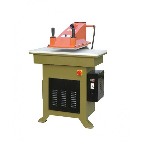 Пресс вырубной (вырубочный) гидравлический с автоматической регулировкой режимов прессования. Автоматический контроль высоты хода ударной плиты исключает необходимость ручной регулировки высоты плиты. Регулировка величины усилия выполняется на панели управления. Для стандартного прессования небольших элементов отрегулируйте мощность прессования до максимума. Предназначен для вырубки кожи, пластика, ковролина, губчатых напольных покрытий и шпона. Применяется в производстве кожаных сумок, игрушек и головных уборов.