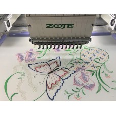 ZOJE ZJ-1201H (400x500) (комплект) Одноголовочная двенадцати игольная, (12 цветов), вышивальная машина с полем вышивки 400*500 мм, с верхним пантографом и с усиленной конструкцией рамы машины. Машина выполняет вышивку высокого класса на различных видах материалов, включая кожу. Специализация – промышленная вышивка на готовых изделиях, элементах кроя, головных уборах. При необходимости машина может поставляться в комплекте с устройствами для пришивания пайеток, шнура. Достоинства: Автоматическая обрезка нити Автоматическая см..