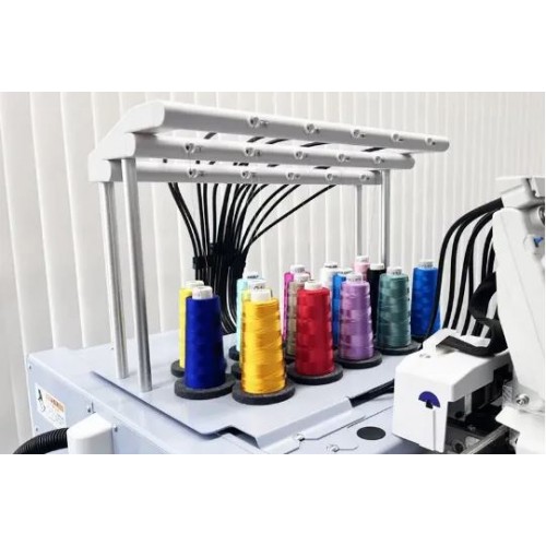 - Новая стойка для нитей позволяет легче заправлять нити с передней части машины.