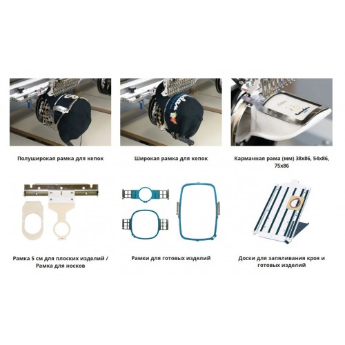 Широкий ассортимент палец и дополнительных рамок доступен для выполнения вышивки на различных изделиях, включая одежду, спортивную форму, униформу, рабочую одежду, школьные товары, обувь, носки, перчатки, головные уборы, сумки и многое другое.