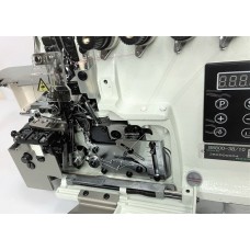 ZOJE B9500-70-ED2 (комплект) Высокоскоростной пятиниточный двухигольный промышленный оверлок со встроенным в корпус энергосберегающим двигателем и пультом управления, с автоматическим позиционированием иглы, программируемой электромагнитной обрезкой цепочки ниток, автоматическим подъемом лапки, для средних и средне-тяжелых материалов. Три датчика: один перед лапкой для автоматического подъема лапки перед началом шитья; два, передний и задний для автоматической обрезки и задания длины конца нити после обр..